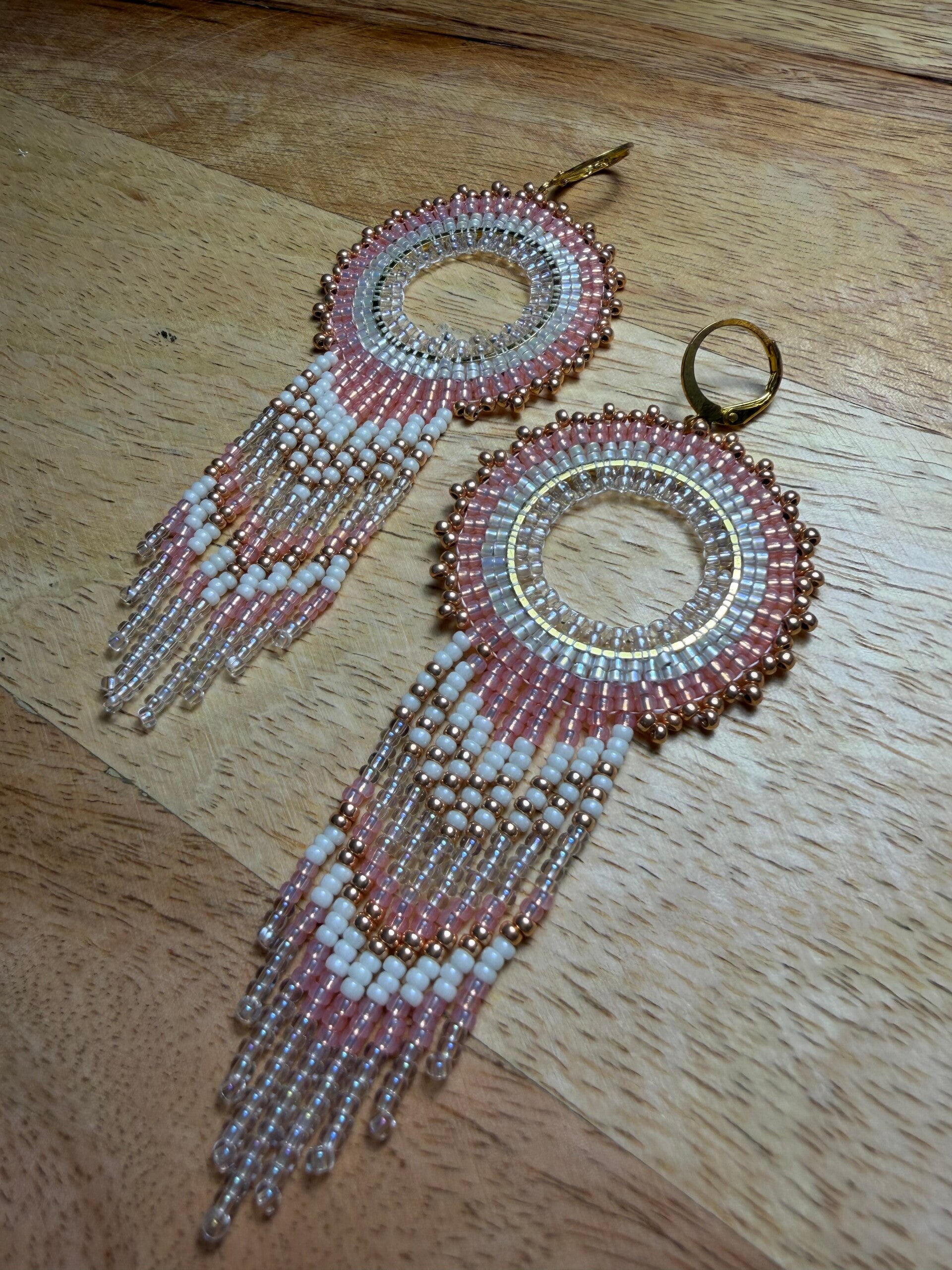 Deze oorbellen hebben een goudkleurige ring en hanger. Pas op met water